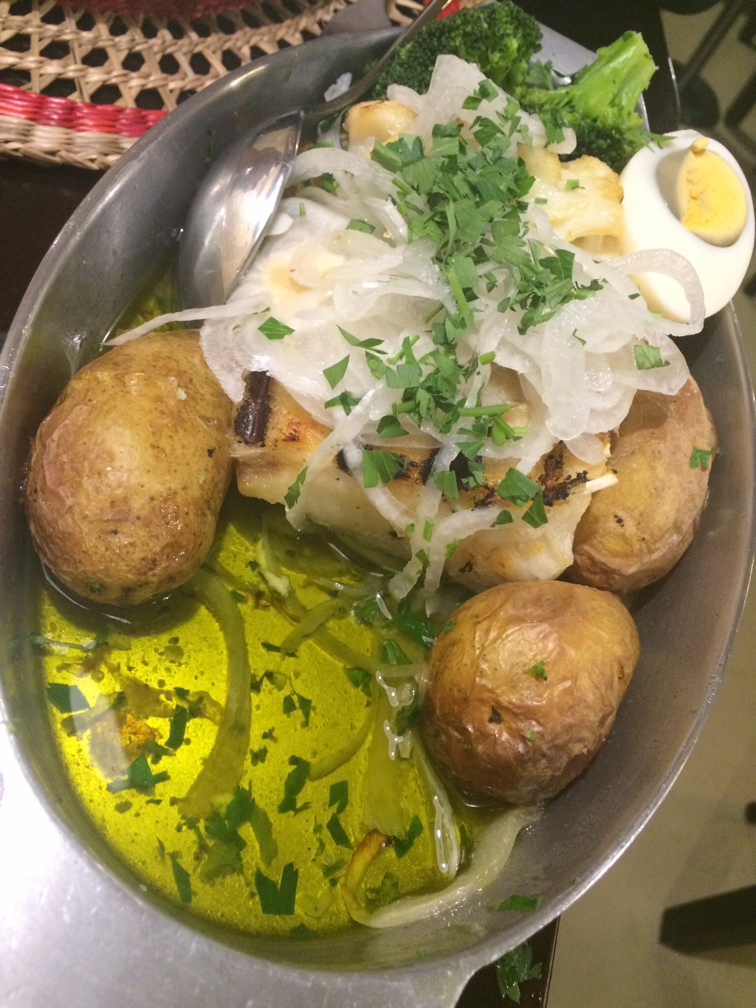 Tapas at a cute little side street cafe were followed by a late dinner of ..what else…codfish at a highly recommended restaurant called Baralhoiero on the waterfront. This dish was a large codfish steak baked with potatoes, broccoli, onions and garlic all swimming in a pool of extra virgin olive oil – heaven!